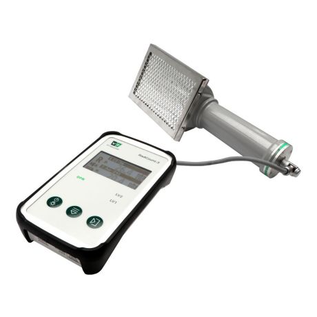 O medidor de radiação modelo 9DP* é um equipamento para medir radiação ionizante utilizando uma câmara de ionização pressurizada, altamente sensível, com design feito para medidas de equivalente de dose ambiente de acordo com a ICRU. O aparelho é adequado para monitoração de área em locais que possuem ou podem possuir fontes de radioatividade, emissoras de radiação beta acima de 1 MeV, raios X ou radiação gama acima de 25 keV, com medidas da faixa de radiação de fundo até 50 mSv/h.
