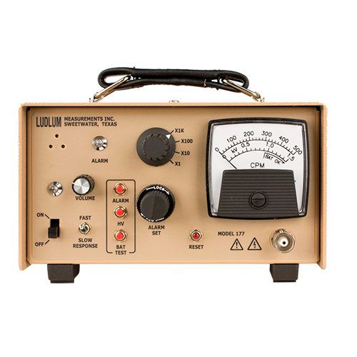 O monitor de radiação modelo 177 é um equipamento robusto de bancada com alarme para medir radiação ionizante, sendo popular para monitoração de contaminação em estações de trabalho, também sendo possível utilizá-lo como equipamento portátil por até 50 horas por possuir uma bateria interna recarregável.