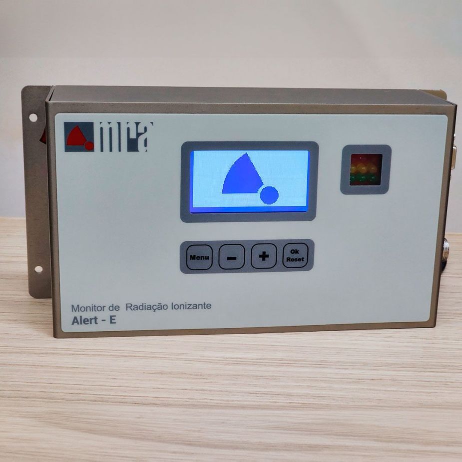 O monitor de radiação ionizante modelo Alert foi desenvolvido para ser robusto e permitir fácil leitura. Sua caixa de alumínio permite fácil fixação em paredes e possui acabamento anodizado que provê excelente resistência à corrosão.