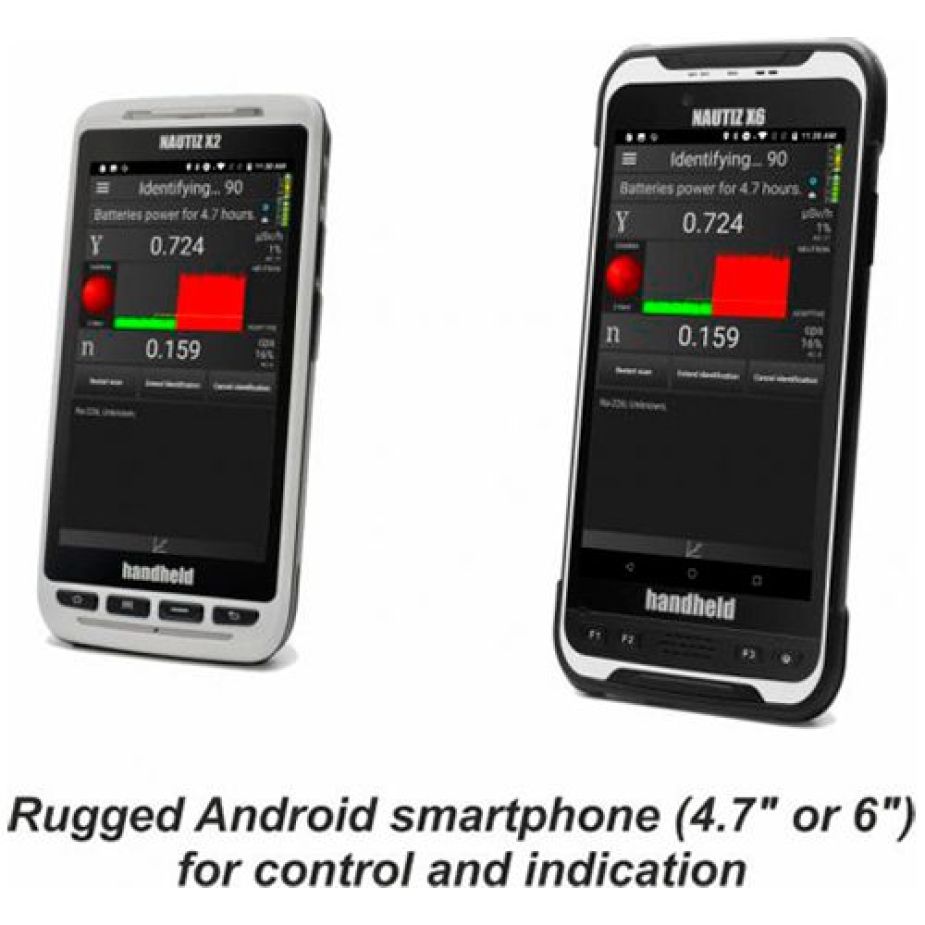 Quando uma fonte radioativa é detectada, o instrumento gera um alarme e identifica a composição de radionuclídeos da fonte. O display apresenta os tipos de radionuclídeos identificados e também está disponível um fone de ouvido opcional para que o operador receba comandos de voz. Os resultados das medidas são continuamente salvos na memória interna do equipamento, para futura análise e processamento em um computador, usando o software.